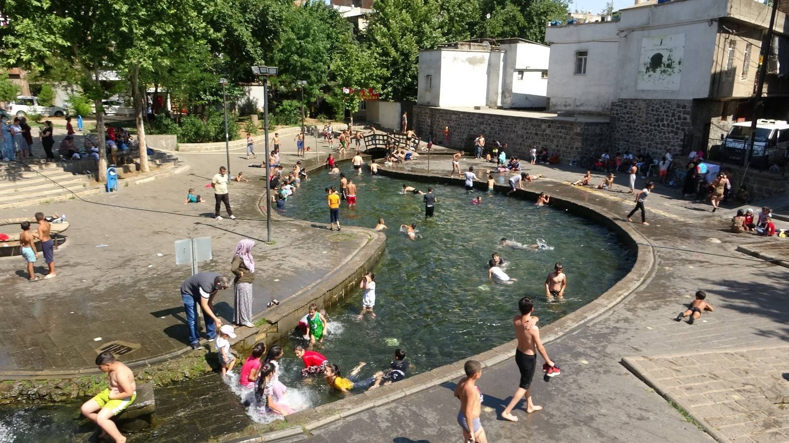 Diyarbakır'da sıcaktan bunalan çocuklar, süs havuzunu doldurdu. Diyarbakır Valisi Münir Karaloğlu’na seslenen çocuklar havuz istedi.