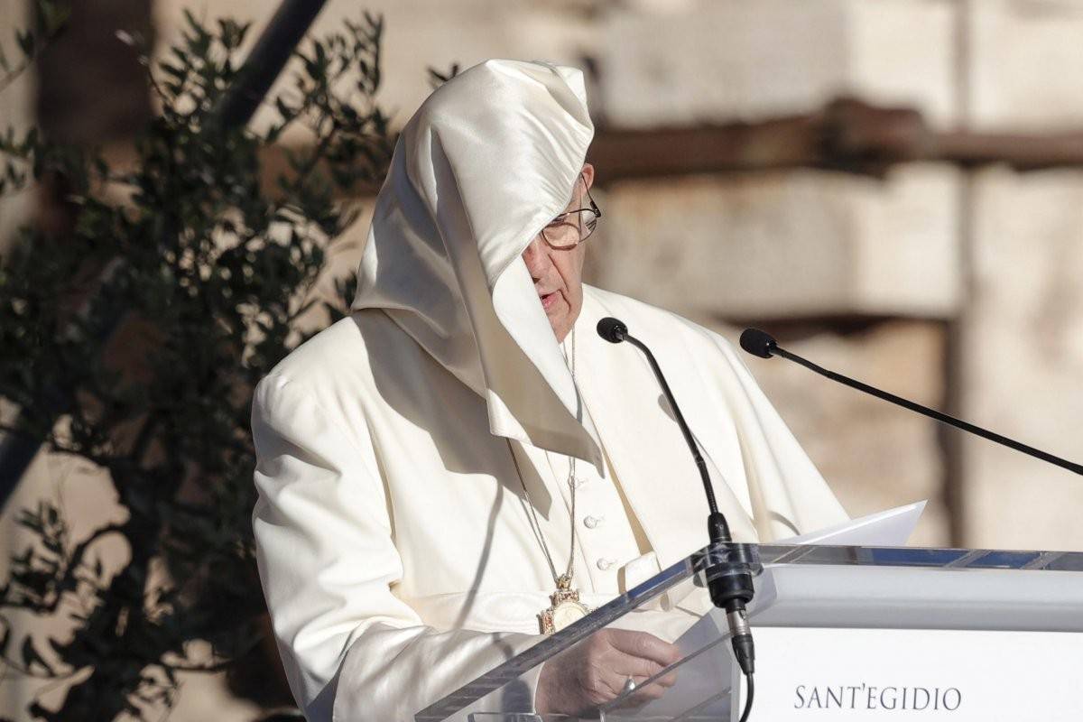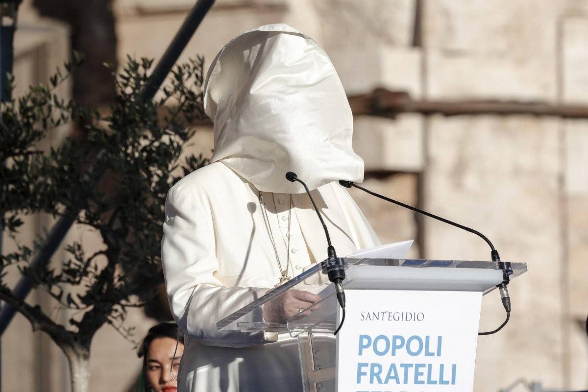 Katoliklerin ruhani lideri Papa Francis'in ‘Kardeş halklar, gelecekteki topraklar’ etkinliğindeki konuşmasına şiddetli rüzgar engel oldu. Francis rüzgar nedeniyle bir yandan yüzüne gelen cübbesini kontrol etmeye çalışırken diğer yandan da konuşmasını tamamlamaya çalıştı.