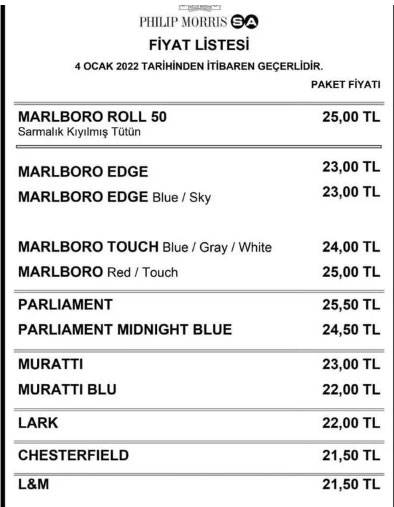 Sigaraya ne kadar zam geldi? Yeni sigara fiyatları ne oldu? Milyonlarca kişinin araştırdığı sigara zammı hakkında son dakika gelişmeleri yaşanıyor. British American Tobacco firmasının elindeki tütün ürünlerine 3 TL zam geldi. Kent, Kent D-Range, Kent Swicth ve Kent N-Range gibi en çok tercih edilen ürünlerin yeni sigara fiyatları hakkındaki tüm detayları haberimizde bulabilirsiniz. Yeni sigara fiyatları ile zamdan haberi olan vatandaşlar Marlboro yani Philip Morris sigara fiyatlarını sorgulamakta.