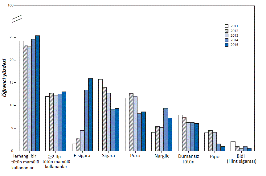 Rakamlara bakacak olursak 2015 yılı içinde toplam 3 milyon orta okul ve lise öğrencisinin e-sigara kullandığı anlaşıldı. Bu rakam 2014'te 2,5 milyondu. Aktif tütün mamulü kullanan öğrenci sayısının ise 4,7 milyona çıktığı açıklandı.