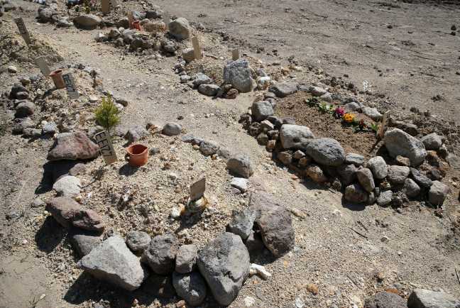 "Barış Anıtı"nın yanındaki mezarlığa, 2014 yılında 13, 2015'te 45 kimliği belirlenemeyen çoğu kadın ve çocuk defnedildi. Bu yıl ise ölümlerin artmasıyla mezarlıkta, 500 cenazenin defnedilebileceği 412 numaralı ada, tamamıyla Ege Denizi'nde yaşamını yitiren kimliği belirsiz göçmenlere ayrıldı. Bu yıl Ege Denizi'nde ölen 85 kişi, buraya defnedildi.