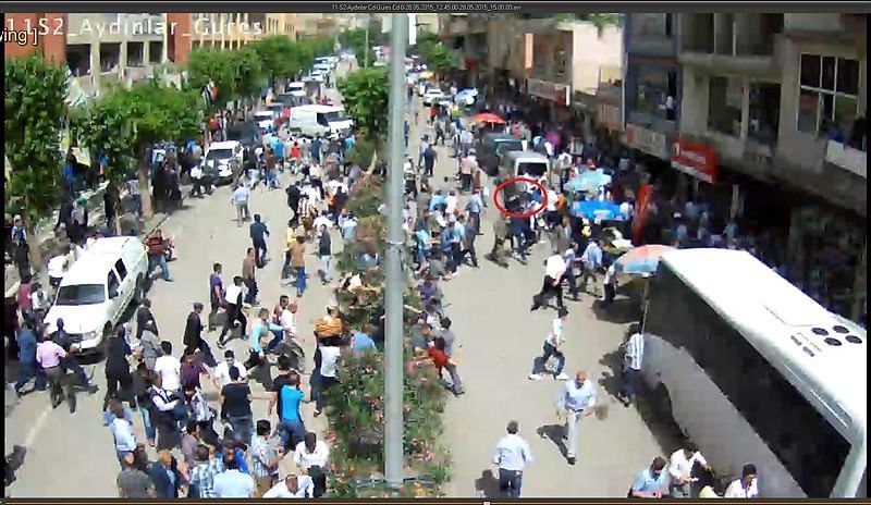 Soruşturma kapsamında incelenen MOBESE görüntülerinde, Başbakan Davutoğlu'nun AK Parti Siirt Gençlik Kolları'ndaki mitinginin ardından ellerinde Türk Bayrağı ve AK Parti bayrakları bulunan AK Parti Siirt Gençlik Kolları Ar-Ge Başkanı Ekinci, Gençlik Kolları üyesi Yılmaz ve Timurtaş'ın, HDP seçim bürosunun karşısındaki yoldanAK Parti il binasına doğru ilerlediği yer alıyor.