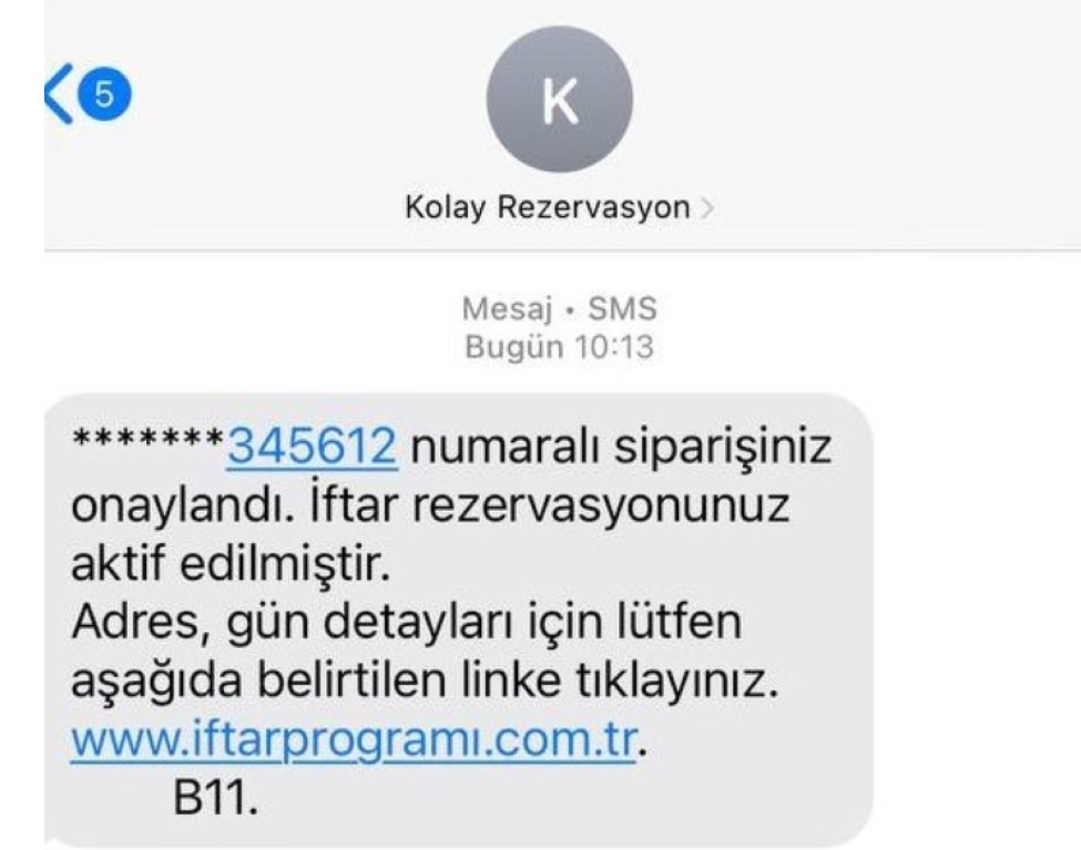 Dolandırıcılar, zaman dilimlerine göre yöntemler bularak vatandaşları ağlarına düşürmeye çalışıyor. Ramazan ayında ise ‘İftar rezervasyonunuz aktif edilmiştir’ şeklinde gönderdikleri mesajlar içerisindeki linklere tıklayan vatandaşları kandırmak isteyen dolandırıcılar, kişilere ulaşıyor. Dolandırıcılar, linke tıklayan vatandaşlara ise özellikle iftar saatine yakın zamanlarda ulaşarak ağlarına düşürüyor.
