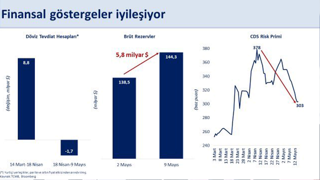 Şimşek, sosyal medya hesabından yaptığı açıklamada, şunları söyledi: "Zamanında attığımız doğru adımlarla finansal piyasalarda görünüm iyileşiyor. Yabancı para cinsi mevduat (DTH) talebi ve ülke risk primi (CDS) gerilerken rezerv birikimi yeniden başladı."