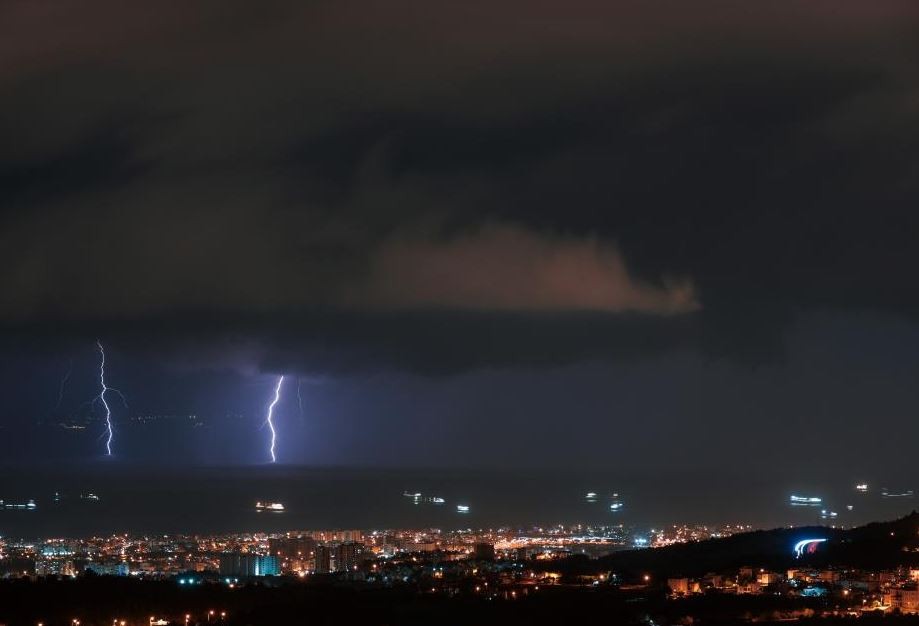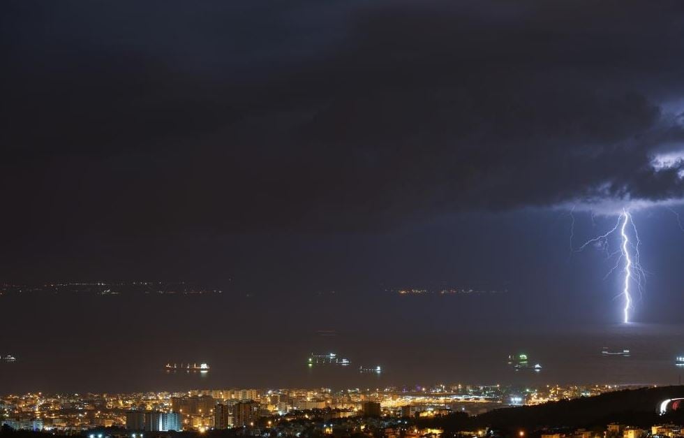 Hatay'ın İskenderun ilçesinde etkili olan yağışla birlikte ardı ardına çakan şimşekler geceyi aydınlattı.