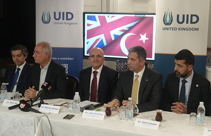 Şimşek, Londra'da Uluslararası Demokratlar Birliği (UİD) tarafından düzenlenen İngiltere Halk Buluşması'nda küresel ve Türkiye ekonomisine ilişkin açıklamalarda bulundu.
