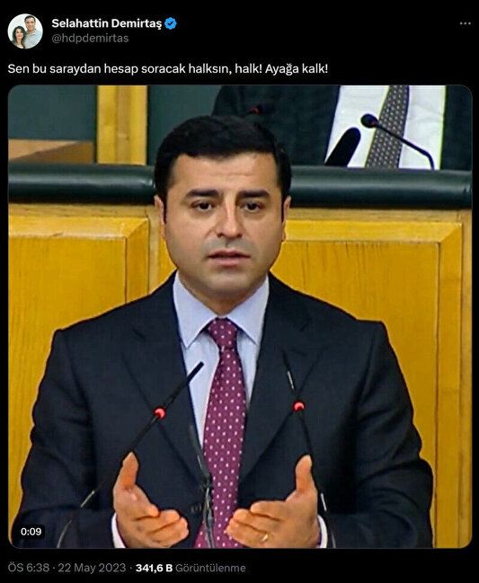 Demirtaş Twitter'dan yaptığı paylaşımda, "Sen bu saraydan hesap soracak halksın, halk! Ayağa kalk!" ifadelerini kullandı.
