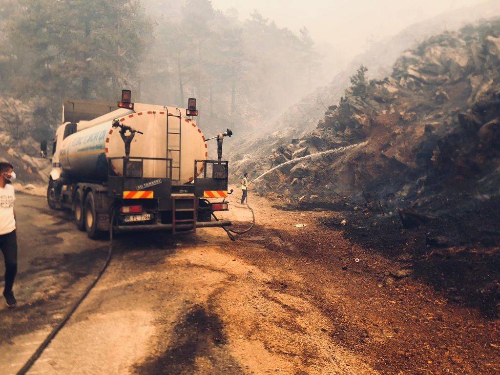 Sincan Belediyesi, Manavgat’ta söndürme ve soğutma çalışmalarına destek olması amacıyla 2 su tankeri ve 6 kişilik ekip gönderdi. Manavgat’a ulaşan ekipler söndürme çalışmalarına destek vermeye başladı. Ekipler aynı zamanda yangından etkilenen hayvanların su ihtiyacının karşılanması amacıyla da çalışma yürütüyor.