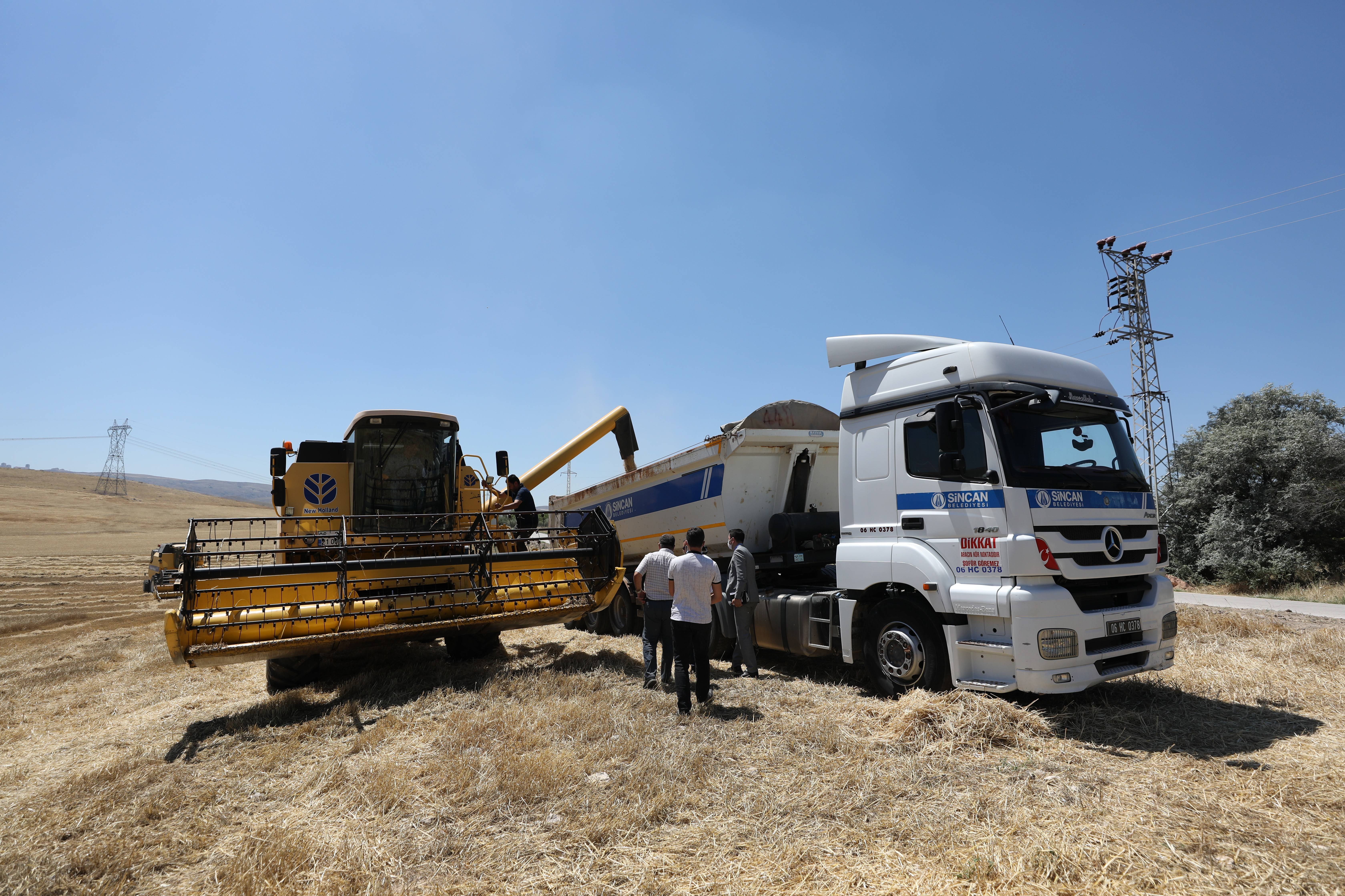 Sincan Belediye Başkanı Murat Ercan biçerdövere binerek tahılları biçti. Elde edilen ürün kamyonlara yüklendi. Başkan Ercan ve Sincan Ziraat Odası Başkanı Zekeriya Sezgin Gülmez nohut ekilen tarlaları da inceledi. Elde edilen ürünler ihtiyaç sahiplerine ulaştırılacak.