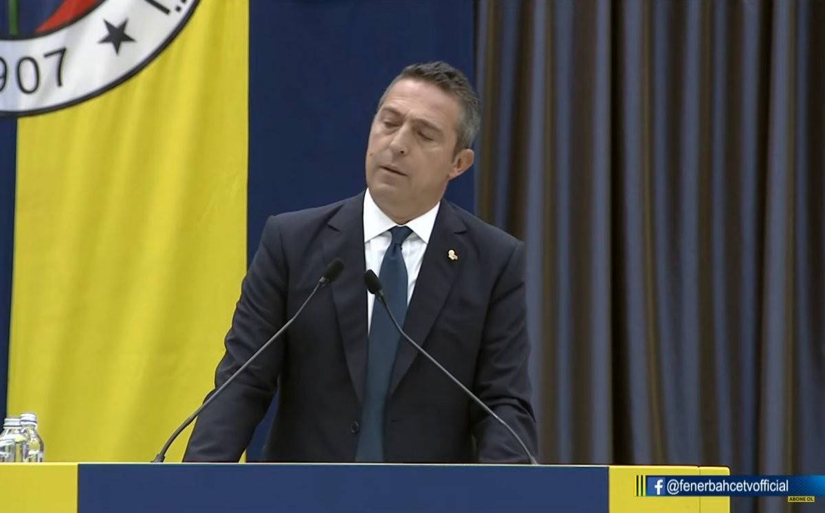 Yüksek Divan Kurulu Toplantısı'nda konuşma yapan Fenerbahçe Başkanı Ali Koç, kürsüde bir sineğin saldırısına maruz kaldı.