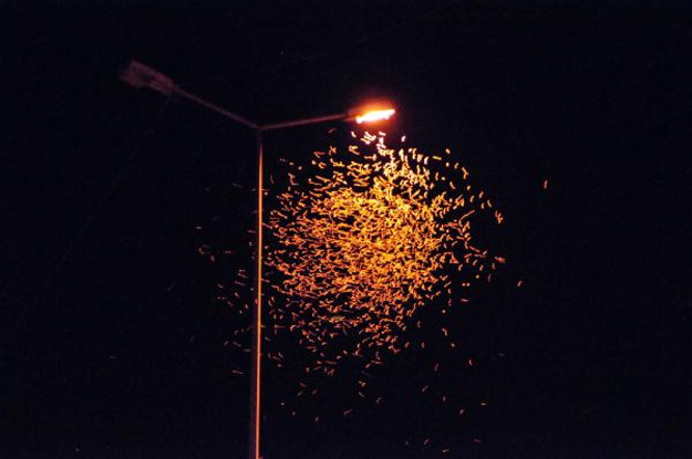 Adapazarı'nda her yıl Temmuz ve Ağustos ayında yaşanan Sakarya Nehri üzerinden uçan milyonlarca 'Birgün Sineği'nin Sakarya Köprüsü üzerindeki sokak ışıklarının çevresindeki son uçuşlarını yaparak topluca öldükleri müthiş doğa olayı yine başladı.