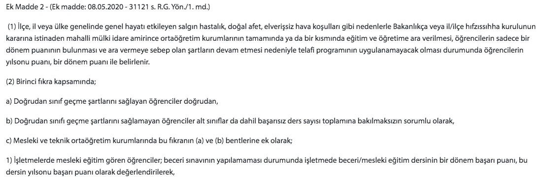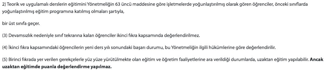 Millî Eğitim Bakanlığı, Ortaöğretim Kurumları Yönetmeliğinde değişiklik yaparak "uzaktan eğitimde puanla değerlendirme yapılmaz" şeklindeki hükmü yürürlükten kaldırmıştır.