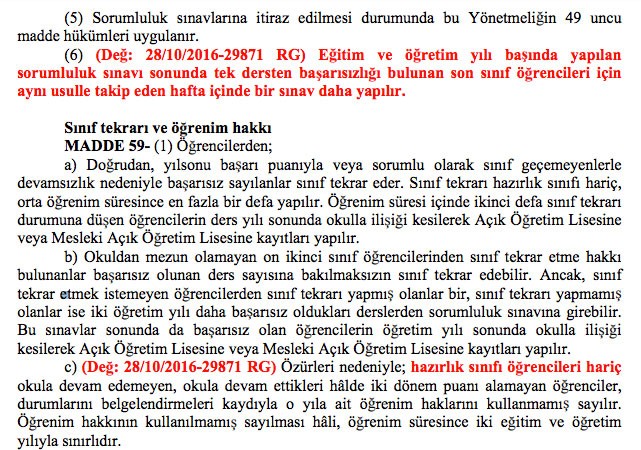 Liselerde ise yıl sonu ortalaması 50’nin altına olan ve 3 dersten zayıfı olan öğrenciler sınıf tekrarına kalıyor.