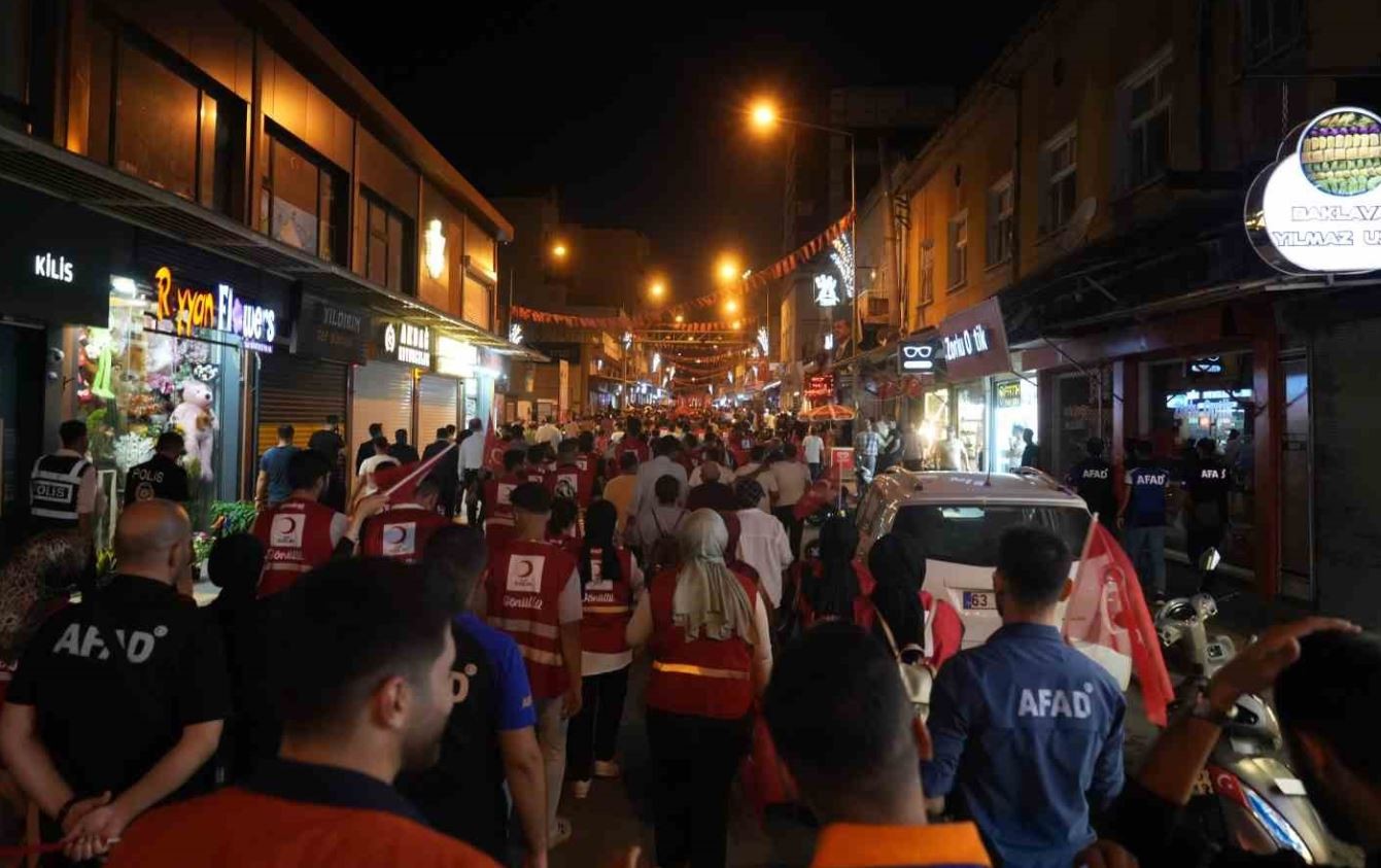 Sınırın sıfır noktası Kilis’te protokol üyeleri ile birlikte binlerce vatandaş Türk Bayrağı eşliğinde yürüdü.