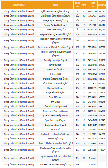Sınav ve yeni okul heyecanını taşıyan öğrenciler bulundukları ildeki, üniversitelerin taban puan, yüzdelik ve kontenjan sayılarını araştırıyor. Yeni dönemde üniversiteye geçecek lise son sınıf öğrencileri sınav başvuru tarihi ve sınav tarihlerinin de açıklanmasıyla hedefledikleri üniversitelerin puan ve kontenjan durumunu sorgulamakta. Peki, Sinop Üniversitesi taban puanı, en düşük yüzdelik, en yüksek yüzdelik ve kontenjan sayıları kaçtır?