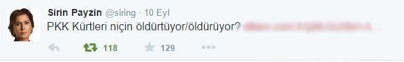 Güya PKK'yı sorgulamak için yazılmış olan bir yazıyı Twitter hesabından paylaşan Şirin Payzın, bu yazıyı paylaşarak ilgili yazıdaki görüşlere katıldığını da kanıtlamış oldu.
