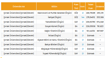Şırnak Üniversitesi 2021 taban puanları ve yüzdelik dilimleri nelerdir?