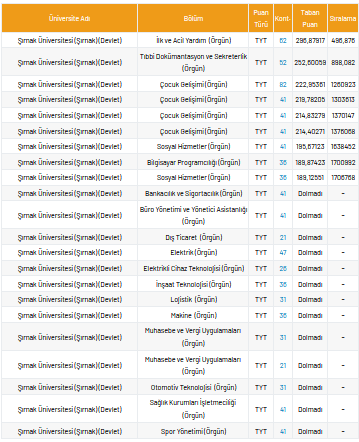 YKS sınavının TYT oturumuna girecek öğrenciler 4 yıllık ve 2 yıllık üniversitelerin taban puanlarını ve yüzdelik dilimlerini araştırmakta. Peki, Şırnak Üniversitesi taban puanı, en düşük yüzdelik, en yüksek yüzdelik ve kontenjan sayıları kaçtır?