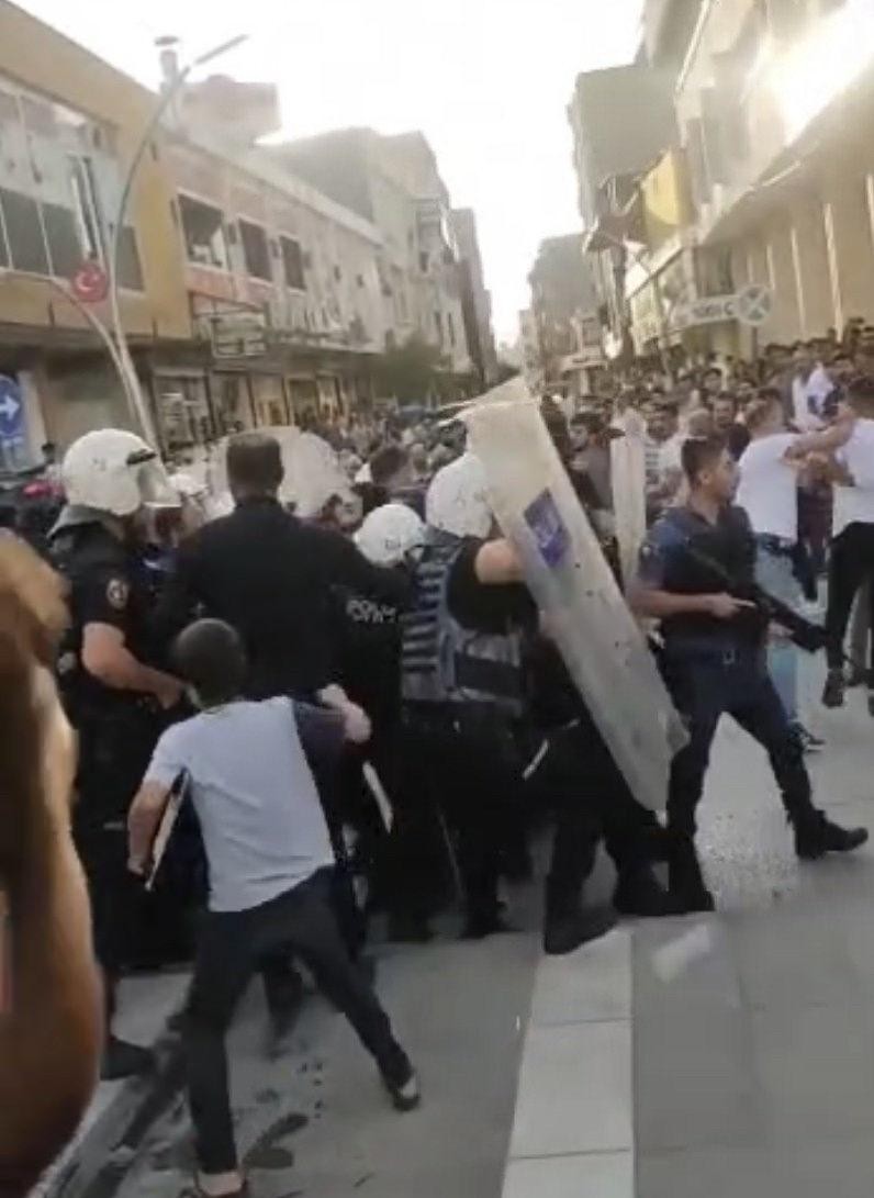 İHA'nın haberine göre, aldığı darbelerle yaralanan İ.Ç., burada sağlık görevlilerince yapılan ilk müdahalesinin ardından zırhlı araca bindirildiği sırada, genç kızın ailesi ve akrabalarının da olay yerine gelmesiyle ortalık savaş alanına döndü.