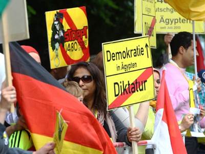 Almanya Başbakanı Angela Merkel ile ortak basın toplantısı düzenleyen Sisi, toplantının sonunda kalabalık bir grup tarafından protesto edildi.
