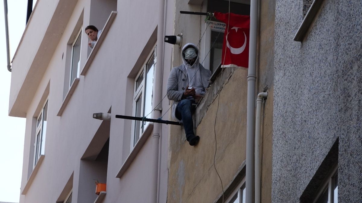 Sürekli, “Askeri personel gelsin, askeri helikopter gelsin" diye bağıran Niyazi A., elindeki keserle balkonun cam ve duvarlarını kırarak eylemini sürdürdü.