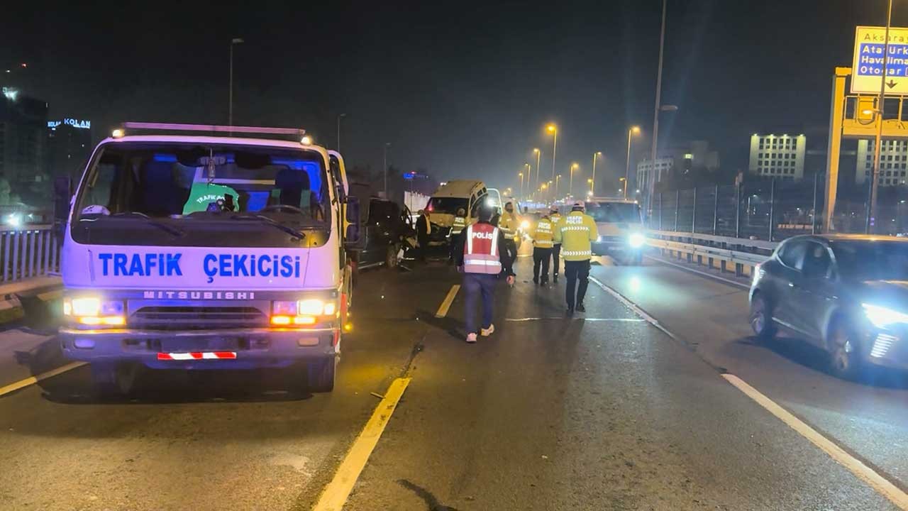 İstanbul'da gece yarısı yaşanan zincirleme kazada bir otomobil, hafif ticari araç ve minibüs çarpıştı. Yolun iki şeridi trafiğe kapanırken, yaralılardan birinin durumunun ağır olduğu bildirildi.Şişli’de, D-100 Karayolu’nda otomobil, hafif ticari araç ve minibüsün karıştığı zincirleme trafik kazasında 1’i ağır 2 kişi yaralandı.
