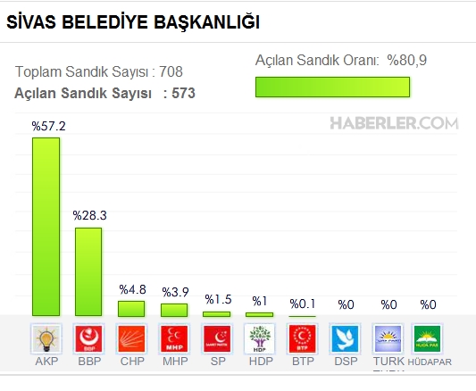 2009 yerel seçimlerine kısa bir süre kala Muhsin Yazıcıoğlu'nun şehadeti üzerine AK Parti seçmeni tarafından da desteklenerek oyların birleştiği merkez olan BBP, bu seçimde kaybetti. "Emaneti geri alan" AK Parti, Sivas'ı büyük farkla önde götürüyor...