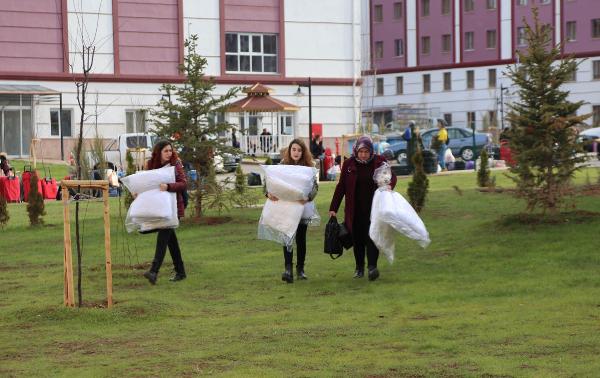 Eşyalarıyla yurda taşınma telaşı yaşayan öğrenciler ise mutlu olduklarını dile getirdi.