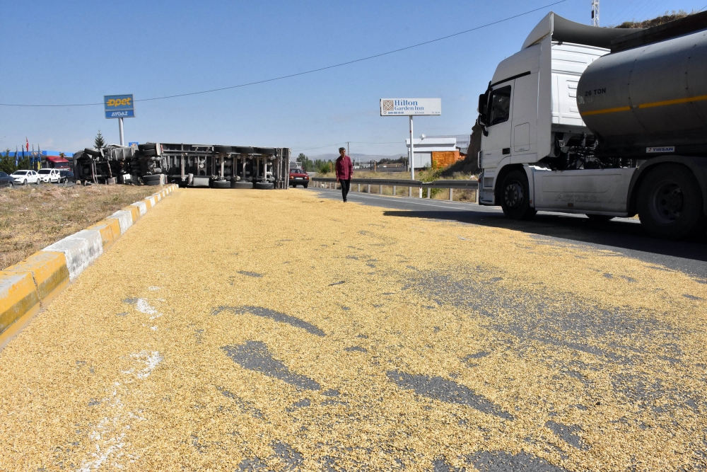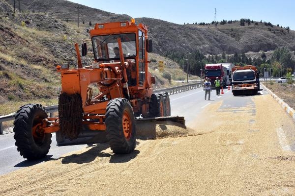 Sivas'ta TIR'ın devrilmesi sonucu dorsede bulunan yaklaşık 6 ton arpa yola saçıldı. Kaza nedeniyle Sivas-Kayseri karayolunda ulaşımda aksama yaşandı.