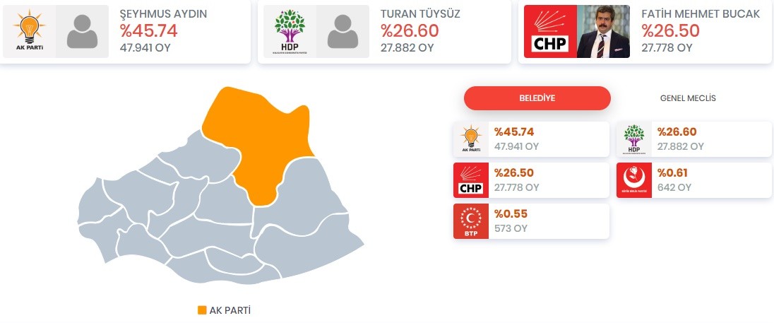 Siverek partilerin oy oranları