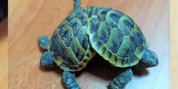 Denizli'de UNESCO Dünya Mirası Listesi'nde yer alan Pamukkale travertenlerinde gezintiye çıkan yerli bir turist tarafından bulunan siyam ikizi kara kaplumbağaları koruma altına alındı.