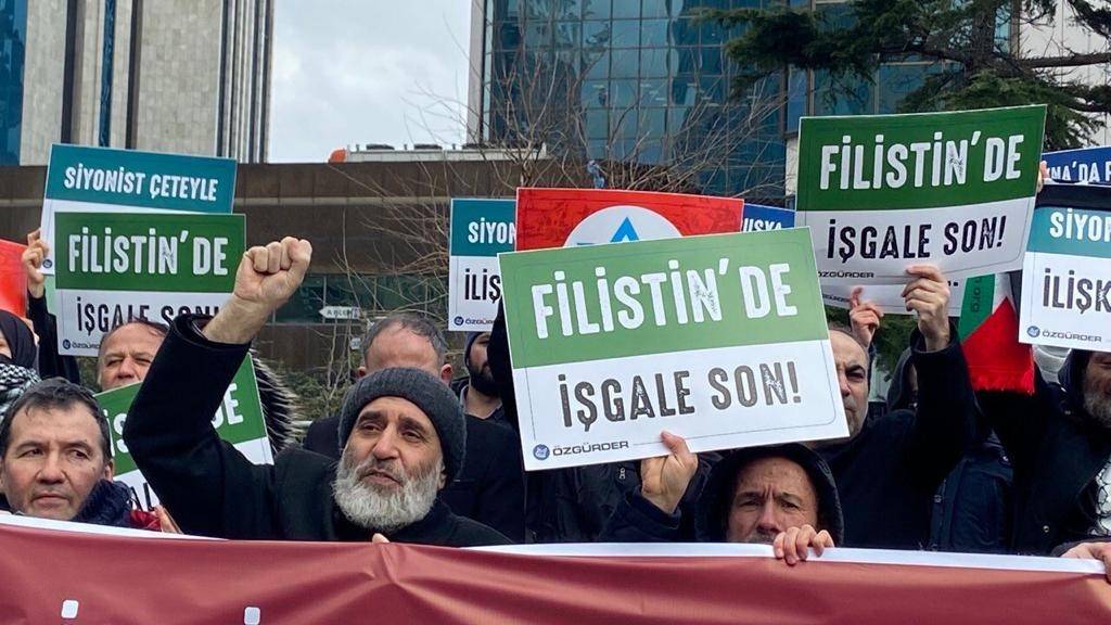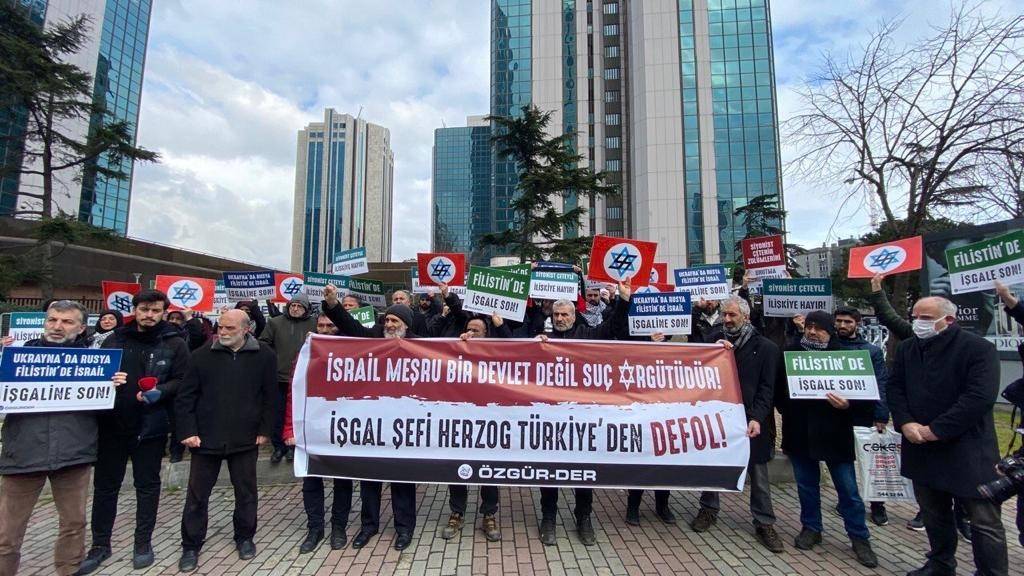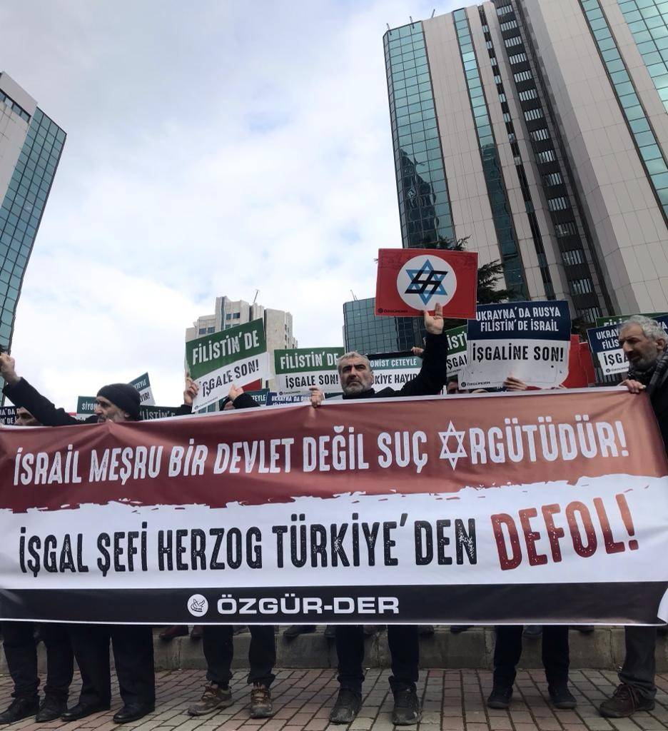 Özgür-Der’in çağrısıyla bir araya gelen vatandaşlar, Siyonist rejimin Cumhurbaşkanı Herzog’un Türkiye ziyaretini protesto etti.