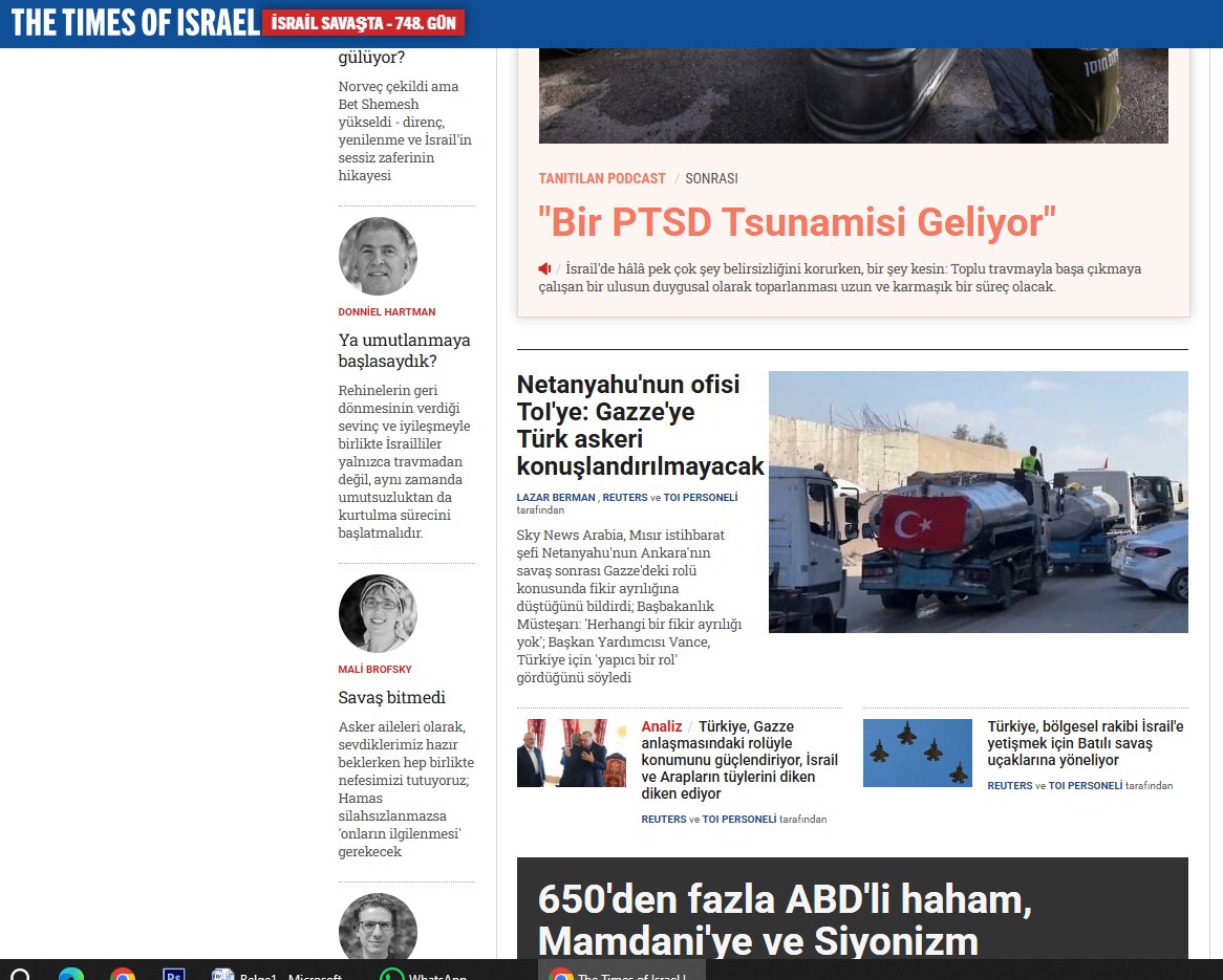 Times of Israel gazetesinde "Gazze'deki Türk Tuzağı" başlıklı analizde ateşkes sonrası ortaya çıkan duruma yer verildi.