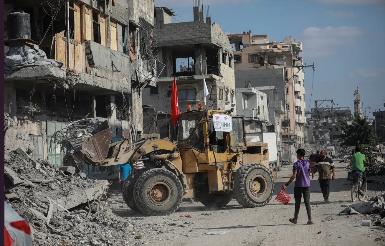 Gazze'de enkaz kaldırma çalışmaları sırasında buldozerlerdeki Türk bayrağının dalgalandığı anlara atıfta bulunulan analizde, şunlar kaydedildi: