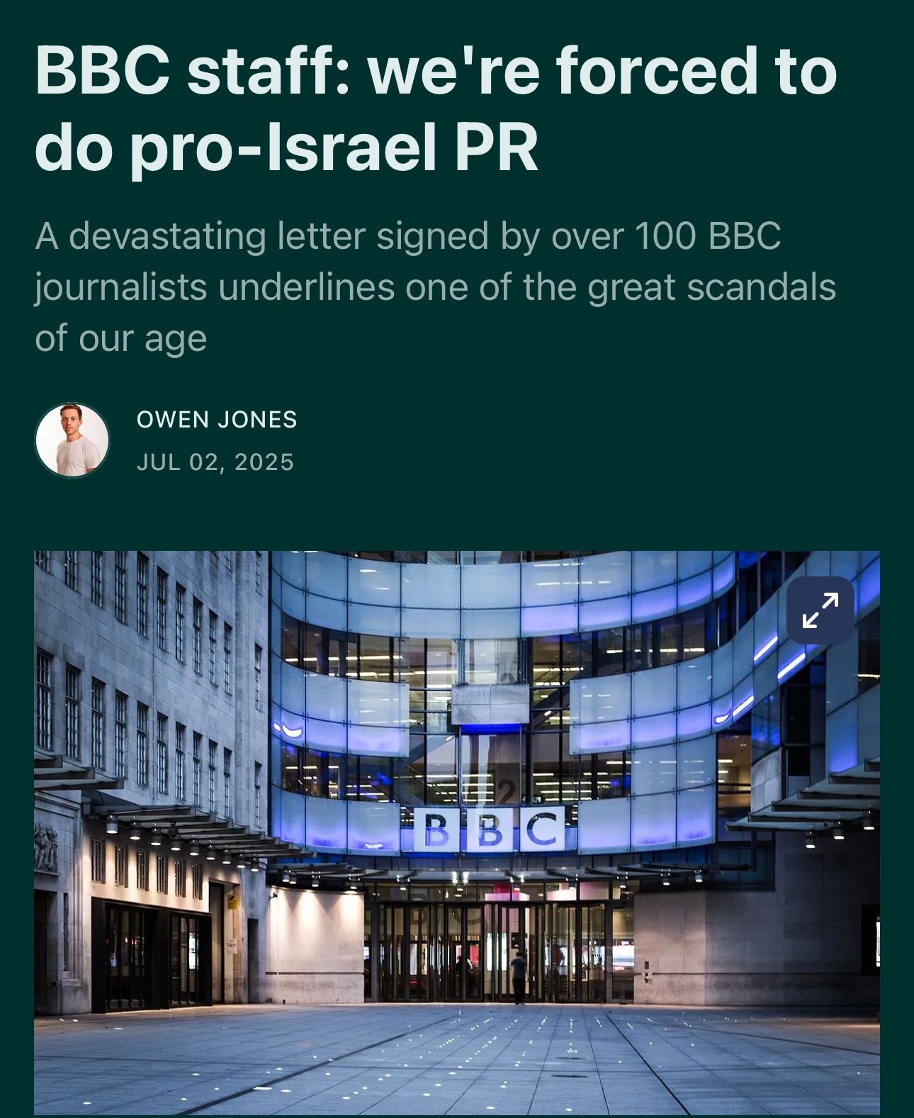BBC’de çalışan 100’den fazla gazeteci genel müdürlerine sert bir ikaz mektubu yazarak, “Biz bağımsız gazetecileriz, bizi İsrail yanlısı haber yapmaya zorlayamazsınız!” dedi.
