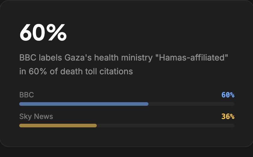 Raporda ayrıca BBC’nin Gazze'deki sağlık bakanlığını ölüm oranlarına ilişkin haberlerin yüzde 60'ında "Hamas bağlantılı" nitelendirdiği, Birleşmiş Milletler’in Gazze’deki can kaybı verilerini güvenilir bulduğuna dair bilginin ise yalnızca yüzde 0,6 oranında yer aldığı belirtildi.