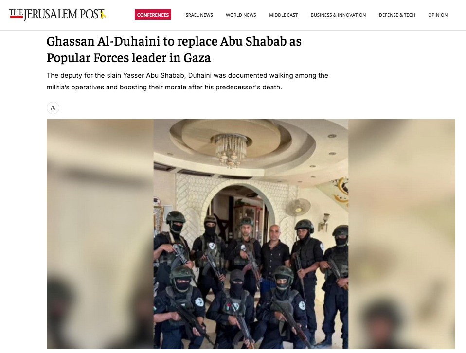 İsrail Jeruselam Post gazetesi de El-Duhaini ile ilgili haberinde, çetenin eski lideri 32 yaşındaki Yaser Ebu Şebab’ın Perşembe günü bir çatışmada ağır yaralı olarak hayatını kaybetmesinin ardından Ebu Şebab çetesinin lideri olarak atandı. Ebu Şebab’ın Hamas ateşiyle değil, bir iç anlaşmazlık sonucu öldürüldüğü ileri sürüldü.