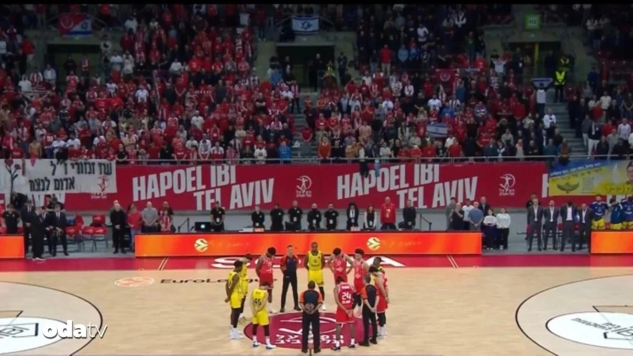 İsrail’in tüm spor organizasyonlarından men edilmesi yönünde küresel çapta çağrılar yapılırken, Avrupa Ligi’nde dün oynanan Hapoel Tel Aviv - Maccabi Tel Aviv basketbol karşılaşmasında 7 Ekim 2023’te hayatını kaybeden İsrail vatandaşları için saygı duruşunda bulunulması dikkati çekti.