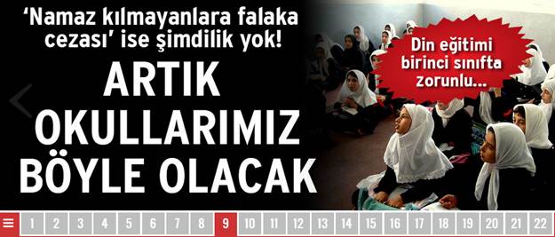 Müslümanı karalama, hedef gösterme, aşağılama konularında sürekli gündeme gelen Sözcü adlı gazete, bir kez daha çirkin yüzünü göstererek din düşmanlığı yaptı. Milli Eğitim Şurası'nda ilkokullarda din dersi verileceği kararını manşetinde gören paçavra Sözcü, 'Namaz kılmayanlara falaka cezası ise şimdilik yok' yazarak, din düşmanlığını sürdürdü.
