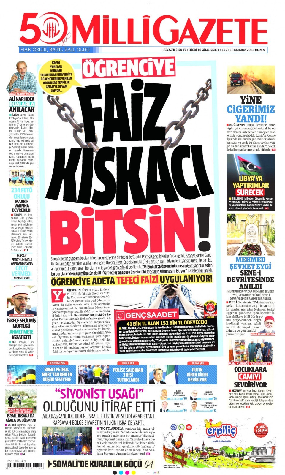 CHP ile ittifak yapan Saadet Partisi de tepki çeken adımlar atmaya başladı. Saadet Partisi'nin gazetesi Milli Gazete, 15 Temmuz'un yıl dönümünde tepki çeken bir yayına imza attı.