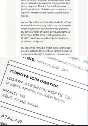 Dünyanın en gözde şehirlerinde, üyelere özel hizmet veren sosyal kulüp Soho House'un İstanbul şubesinin depremzedelere yardım için duyurduğu kampanya herkesi şaşkına çevirdi.