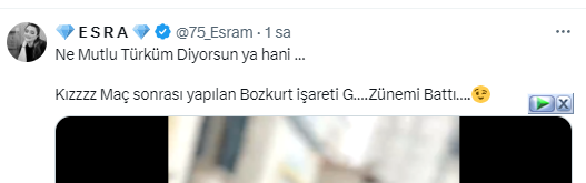 ‘Esra’ adlı sosyal medya kullanıcısı yine yaptı yapacağını. Milli takımda gol sevincini yaşayarak bozkurt işareti yapan futbolcu Merih Demiral’e tepki gösterenlere böyle tepki göstererek “Siz zaten Türk olamazsınız. Sizler içimize sızmış Siyonistlersiniz.” Dedi.