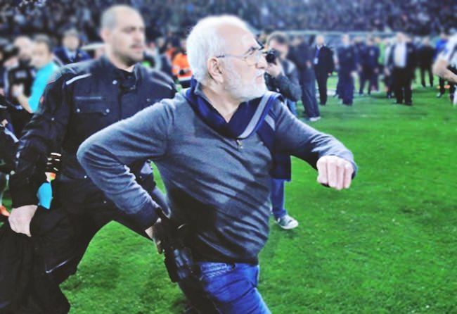 Skor 0-0 iken gollerinin verilmemesine tepki gösteren PAOK taraftarlarına kulüp başkanı Ivan Savvidis de katılıp, belindeki silahla sahaya girince işler içinden çıkılmaz bir hale geldi.
