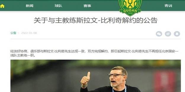 Çin ekibi Beijing Guoan, resmi internet sitesinden yaptığı açıklamada Hırvat çalıştırıcıyla yolların ayrıldığını açıkladı.