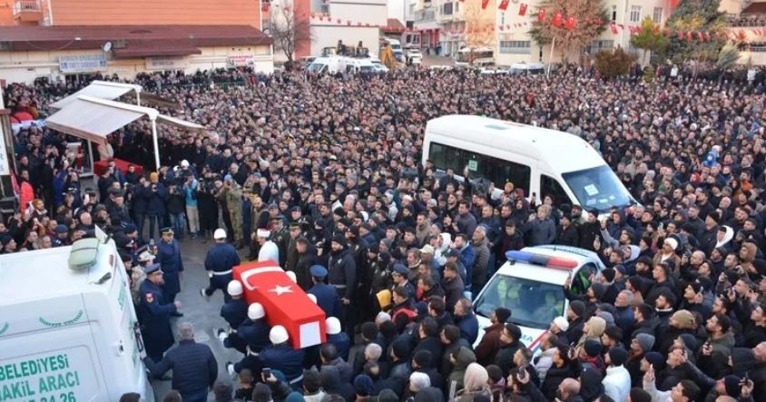 Soğuğa aldırış etmeyen binlerce kişi şehidimizi son yolculuğuna uğurladı