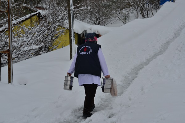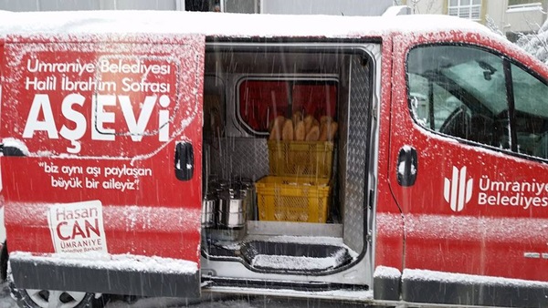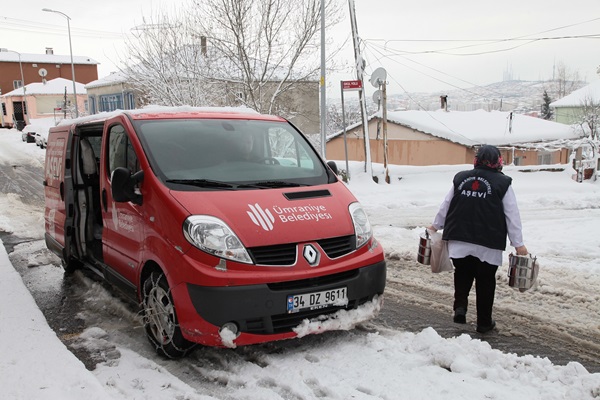 Şartlar ne olursa olsun ihtiyaç sahiplerinin evlerine sıcak aş götüren Ümraniye Belediyesi Aşevi ekipleri, kış mevsiminin zorlu hava koşullarında da kimsesiz ve yoksul insanlar için sabahın erken saatlerinde işbaşı yapıyor. Yemek yapamayacak durumda olduğunu bildiren herkese, gerekli tahkikatları yapmak kaydıyla yardım eli uzatan belediye ekipler, her gün Ümraniye’nin her mahallesine yaklaşık 500 kişilik yemek ulaştırıyor.