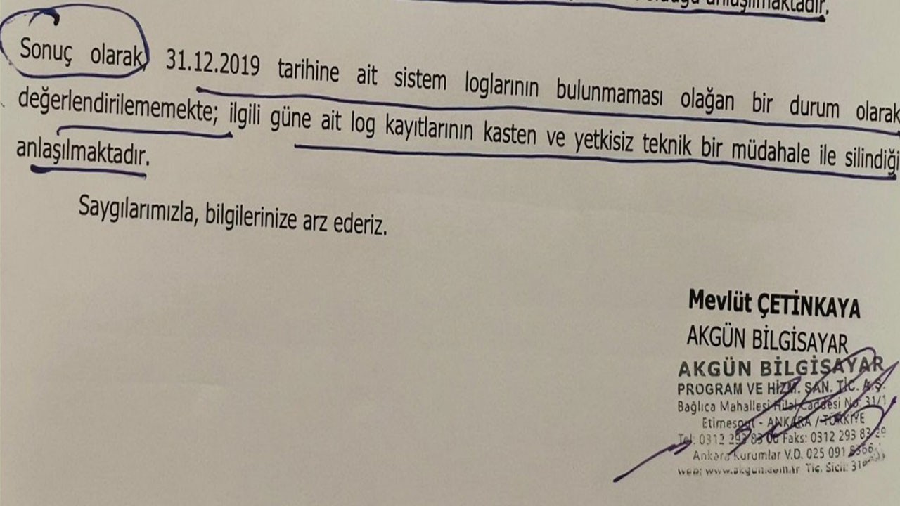 Raporda şu ifadelere yer verildi: “31.12.2019 tarihinde Gülistan Doku isimli hasta da dahil olmak üzere hiçbir hastaya ait log bilgisi sistemde mevcut değildir. Özetle; yapılan teknik değerlendirme neticesinde, 31.12.2019 tarihinden öncesi ve sonrasında sistemde log kayıtlarının mevcut olduğu, ancak yalnızca 31.12.2019 tarihinde hiçbir kullanıcıya ve hastaya ait log bilgisinin yer almadığı tespit edilmiştir. Gülistan Doku isimli hastaya ait 31.12.2019 tarihli hastane kaydının bulunduğuna dair ekte firmamıza gönderilen POLNET çıktısı ve tutanak bulunmasına rağmen yapılan araştırmalar sonucunda bu bilgilere şu an itibarıyla ulaşılamadığının anlaşıldığı, bunun sebebinin ne olduğunun araştırılarak bildirilmesi talep edilmektedir. Sistem üzerinde 31.12.2019 tarihinden öncesine ve sonrasına ait log kayıtları bulunmasına rağmen, yalnızca 31.12.2019 tarihine ait hiçbir log kaydı bulunmamaktadır. Gülistan Doku'nun muayeneye geldiği günlere ilişkin hiçbir log kaydı bulunmamaktadır. Şöyle ki; aynı gün hastaneye başvuru yapan bazı kişilerin vizit kayıtları mevcut olmasına rağmen, bu vizitlere ait log verisi bulunmamaktadır. Bununla birlikte hastalardan 635'inin daha sonraki tarihlerde sistemde log oluşturdukları tespit edilmiştir. Örneğin, bir hastaya ait 31.12.2019 tarihli vizit kaydı sistemde mevcutken, aynı hastanın 01.01.2020 tarihli tedavi sürecine dair log kayıtları bulunmaktadır. Hal böyle iken yukarıda da ifade etmiş olduğumuz üzere ilgili tarihe ilişkin kayıtların kasıtlı olarak silinmiş olduğu tarafımızca değerlendirilmektedir. Sonuç olarak 31.12.2019 tarihine ait sistem loglarının bulunmaması olağan bir durum olarak değerlendirilmemekte; ilgili güne ait log kayıtlarının kasten ve yetkisiz teknik bir müdahale ile silindiği anlaşılmaktadır.”