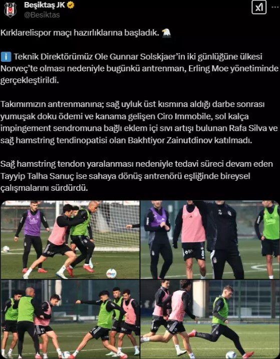 Siyah-Beyazlılar, yaptığı paylaşımda Ciro Immobile, Rafa Silva ve Bakhtiyor Zainutdinov'un sakatlıkları nedeniyle antrenmana katılmadığı bilgisini verdi.