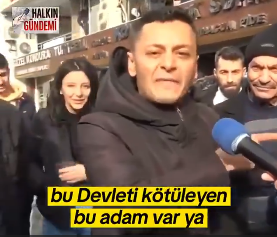 Bir sokak röportajında, hayat pahalılığı ve geçim sıkıntısı nedeniyle Devleti kötüleyen bir vatandaşa, yanındaki bir kişi tarafından sert bir çıkış geldi. Yaşanan gergin anlar, sosyal medyada hızla yayılarak tartışma konusu oldu.
