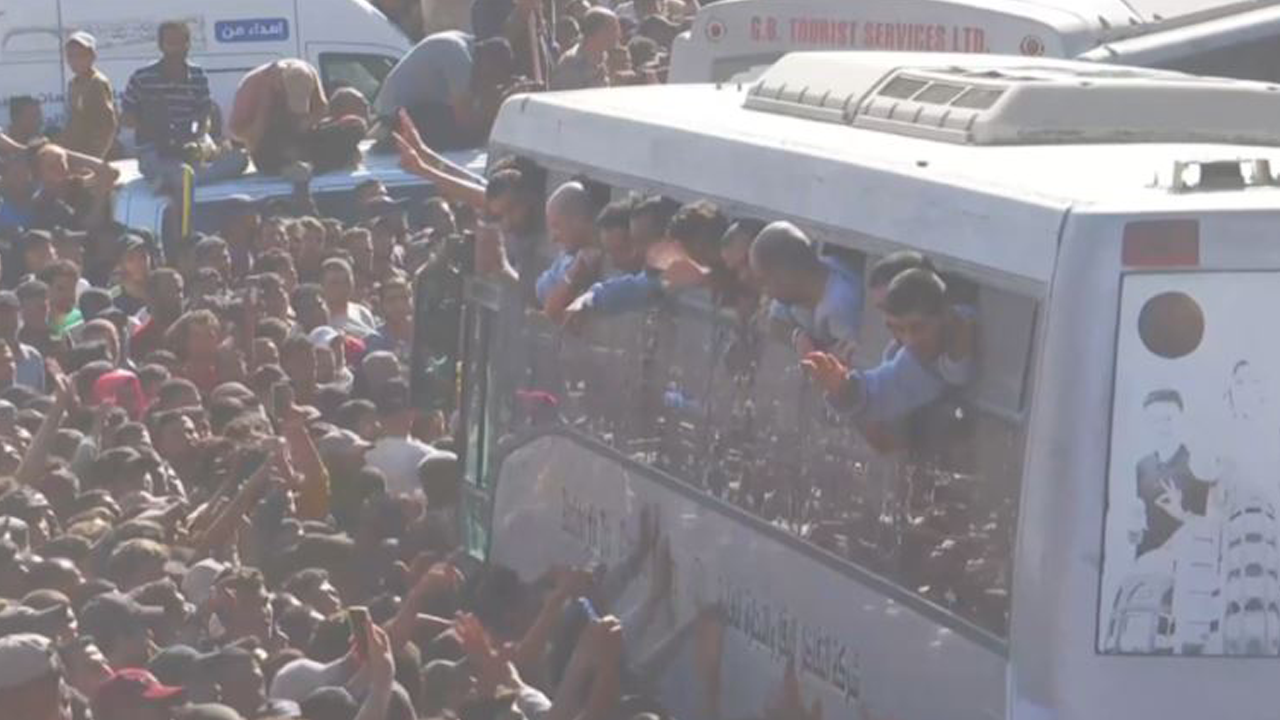 Mahkumları taşıyan otobüslerden biri, Batı Şeria'ya vardı. Diğer otobüsler ise Gazze'ye, Han Yunus'a ulaştı. Otobüslerin hepsi büyük bir çoşkuyla karşılandı. Sokaklar bayram yerine dönerken çocuklar ve gençler otobüsleri görmek için direklere, binalara, araçlara ve podyumlara çıktı. Gazze'de herkes serbest bırakılan Filistinlileri görmek için akın etti.